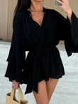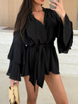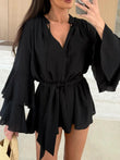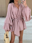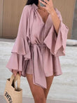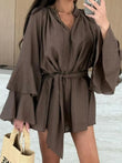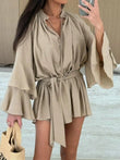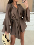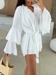 Bell Sleeve Tie Waist Mini Shirt Dress