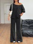 Boat Neck Top and Wide Leg Pants Set