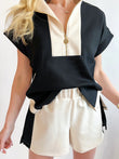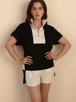 Color Block Half Zip Top and Shorts Two-Piece Set