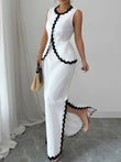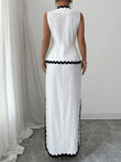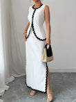 Contrast Scalloped Trim Sleeveless Top and Skirt Set