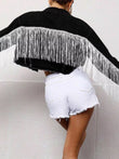 Fringe Button Up Cropped Denim Jacket