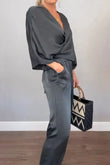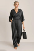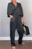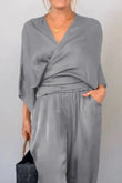 Full Size Wrap Surplice Top and Pants Set Plus Size