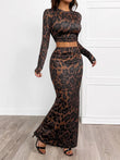 Leopard Round Neck Top and Skirt Set