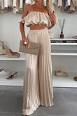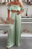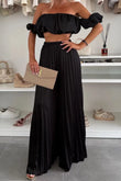 Off-Shoulder Top and Pleated Pants Set