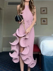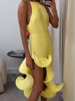 - Ruffle Hem Ribbed Sleeveless Dress