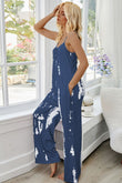 Shiny Tie-Dye Spaghetti Strap Jumpsuit with Pockets