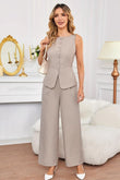 - Sleeveless Button Front Top and Wide Leg Pants Set