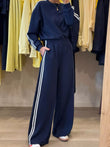 Striped Detail Crewneck Top and Elastic Sweatpants 2pcs Set
