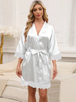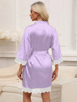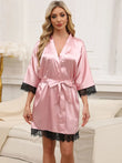Tied Lace Detail Three-Quarter Sleeve Lounge Nightgown