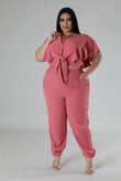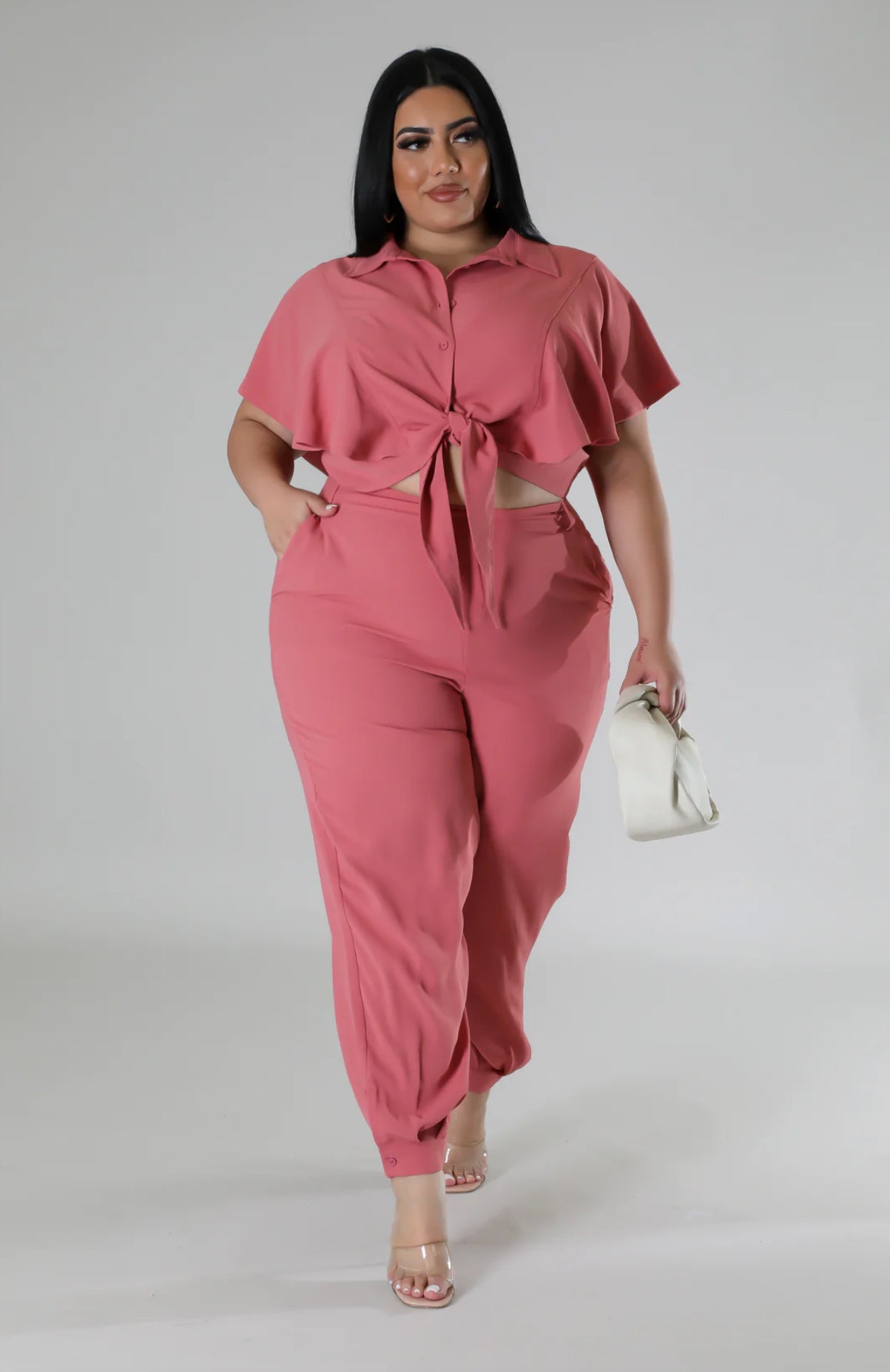 - , Short sleeves, Cropped, High-waisted pants, Cuffed ankles, Zipper closure.